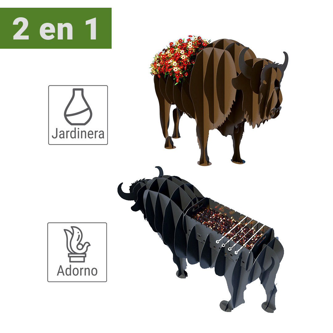 Escultura natural de búfalo en 3D. Ya sea para un ambiente zen, rústico o moderno, la representación de animales en escultura también son muy buenas decoraciones para tus espacios verdes.