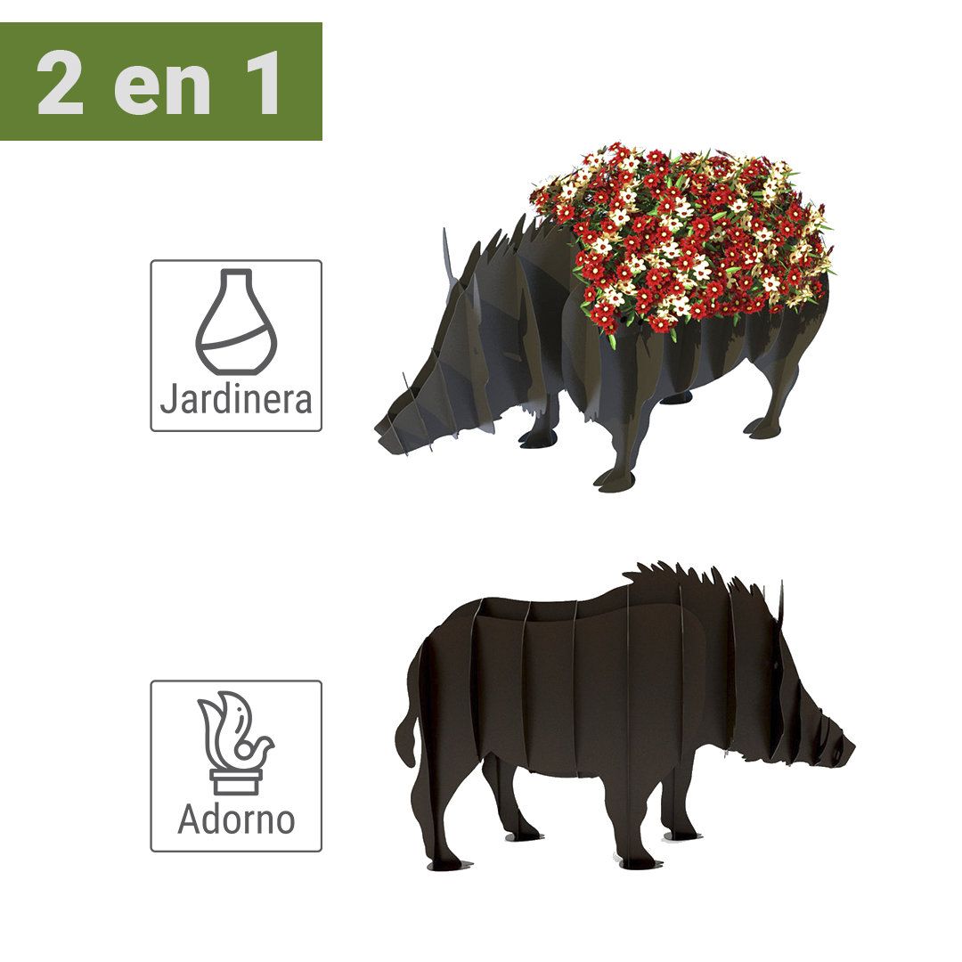Escultura natural de jabalí en 3D. Ya sea para un ambiente zen, rústico o moderno, la representación de animales en escultura también son muy buenas decoraciones para tus espacios verdes.