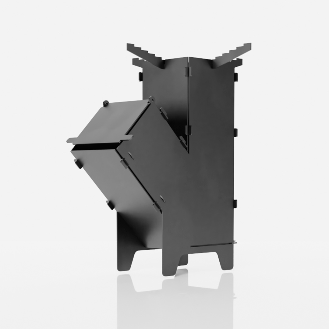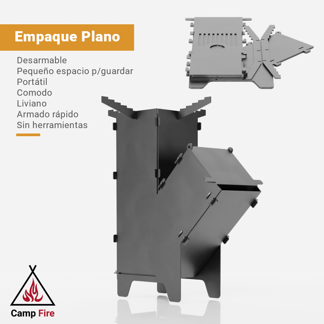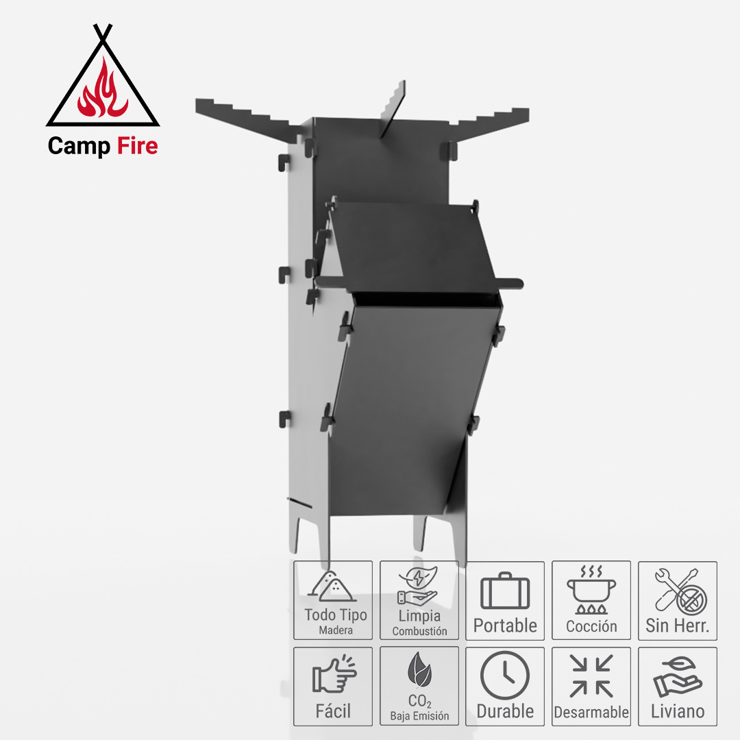 Durable y de bajo consumo. Utiliza biomasa sólida y seca como ramitas, piñas, hierba seca, ramas, corteza de árbol, carbón vegetal, pellets. Pesa 7 kg y es portátil, lo cual es una excelente solución para cocinar al aire libre.