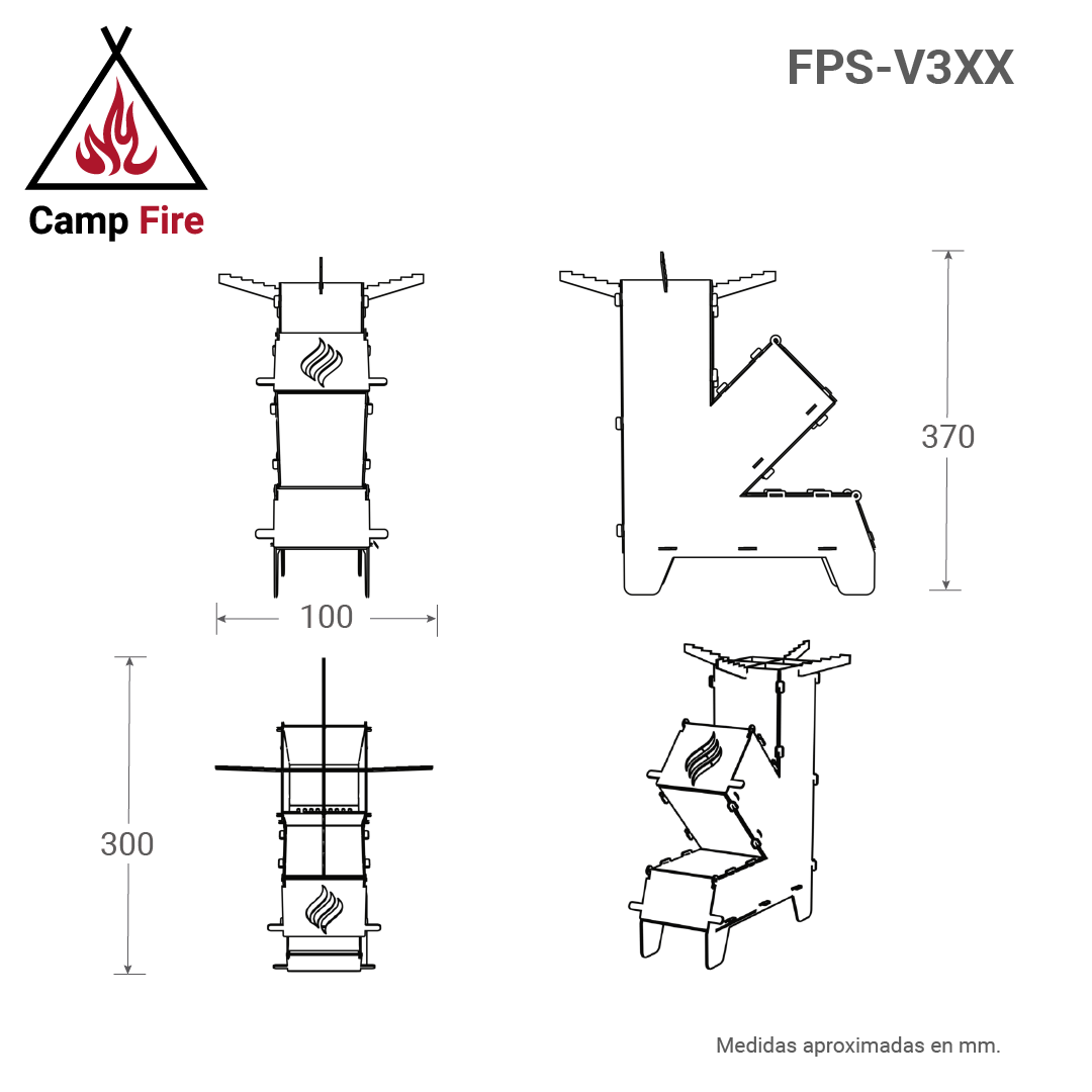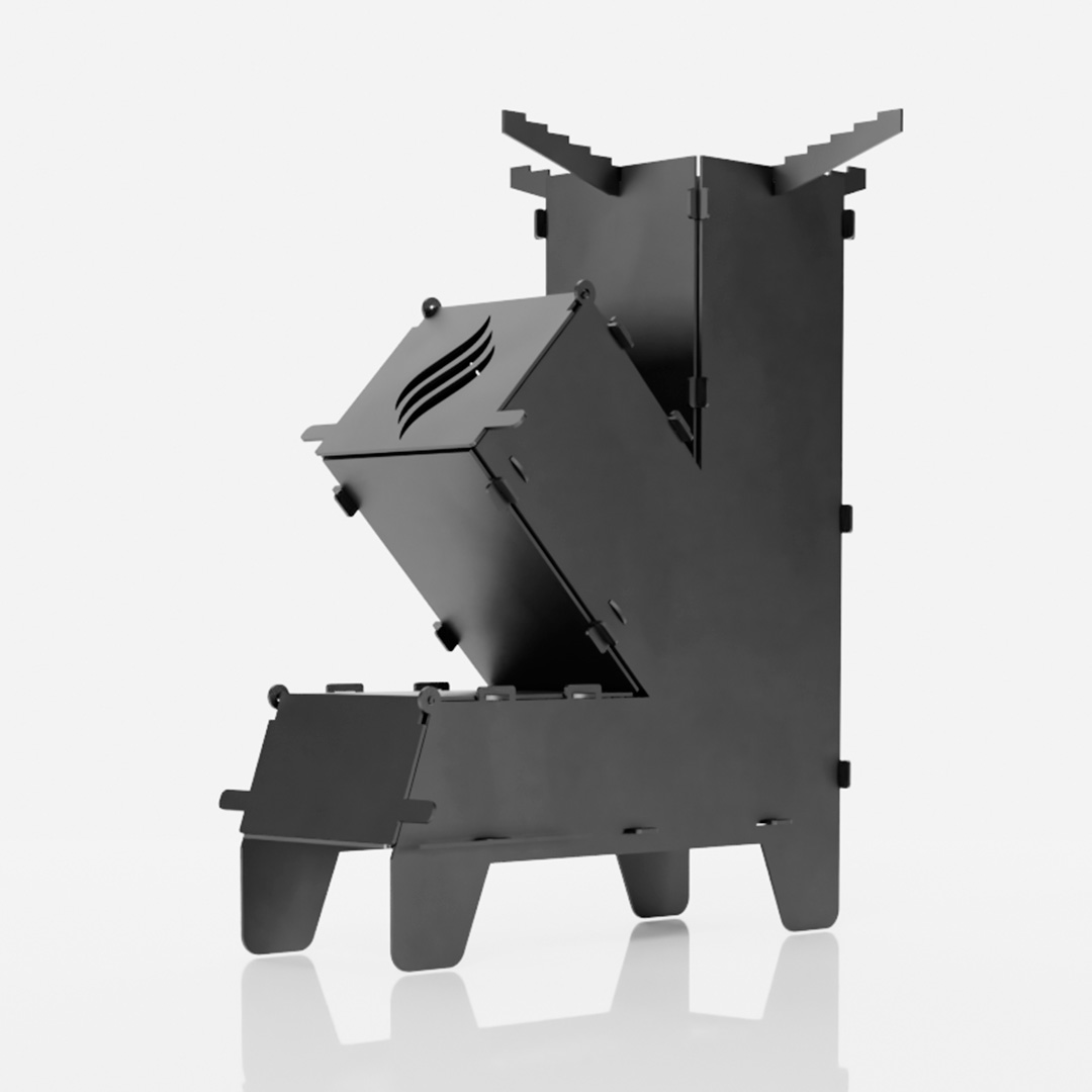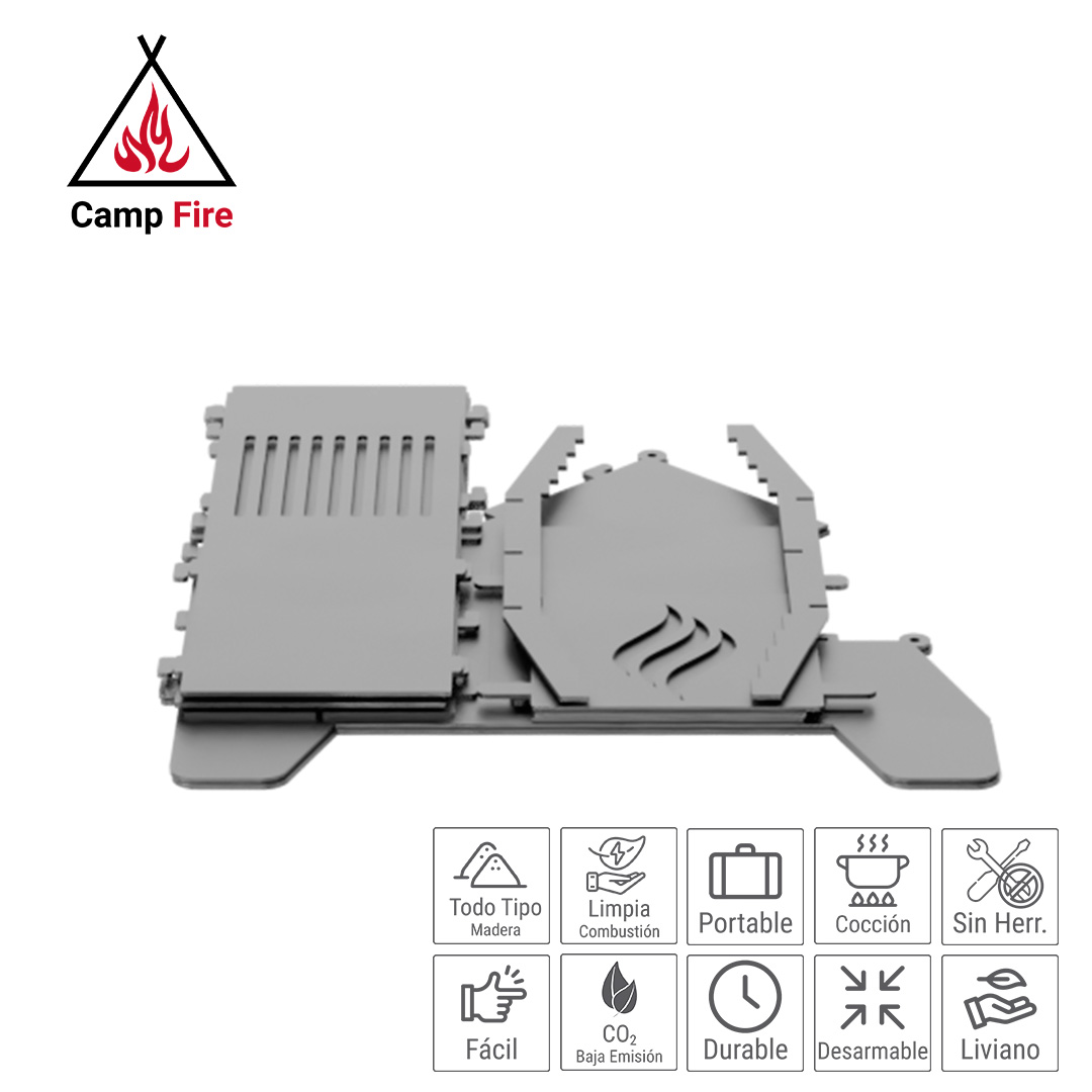Durable y de bajo consumo. Utiliza biomasa sólida y seca como ramitas, piñas, hierba seca, ramas, corteza de árbol, carbón vegetal, pellets. Pesa 7 kg y es portátil, lo cual es una excelente solución para cocinar al aire libre.