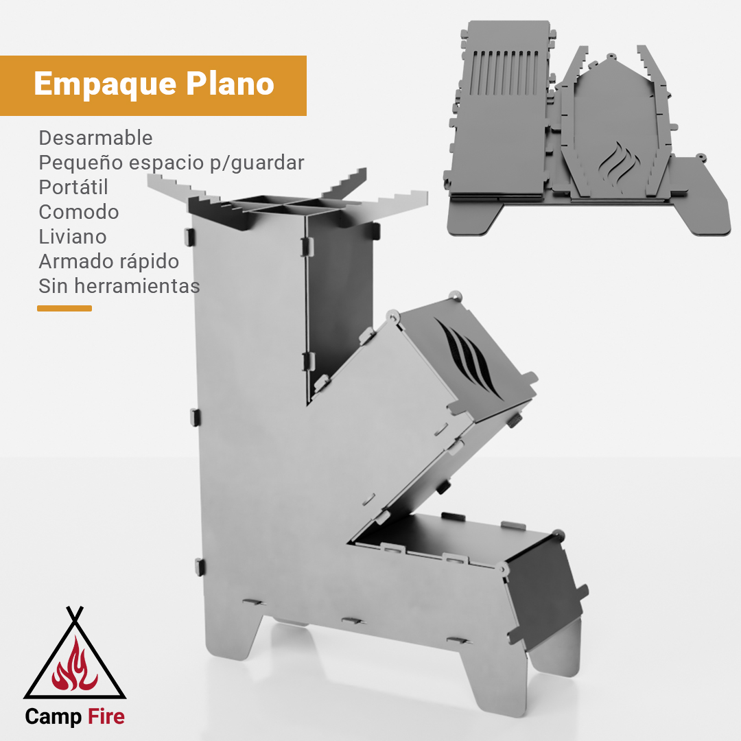 Esta estufa peso pluma se ensambla para crear un infierno de calor eficiente. Dos tomas de aire en la parte superior e inferior de la estufa mejoran la eficiencia de la combustión. Alimenta palos y ramitas y proporcionará calor para hervir agua para el café de la mañana o una comida al final del día en unos pocos minutos.