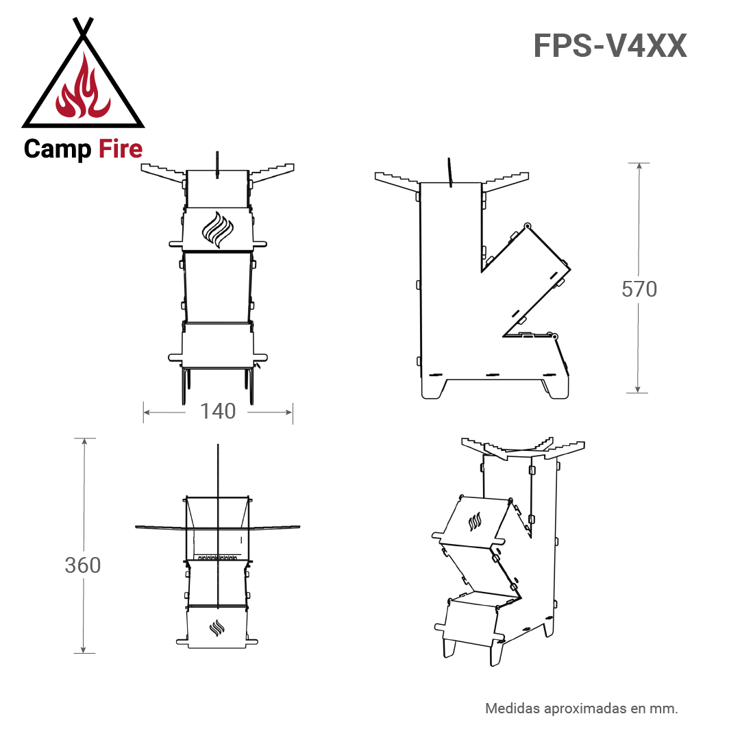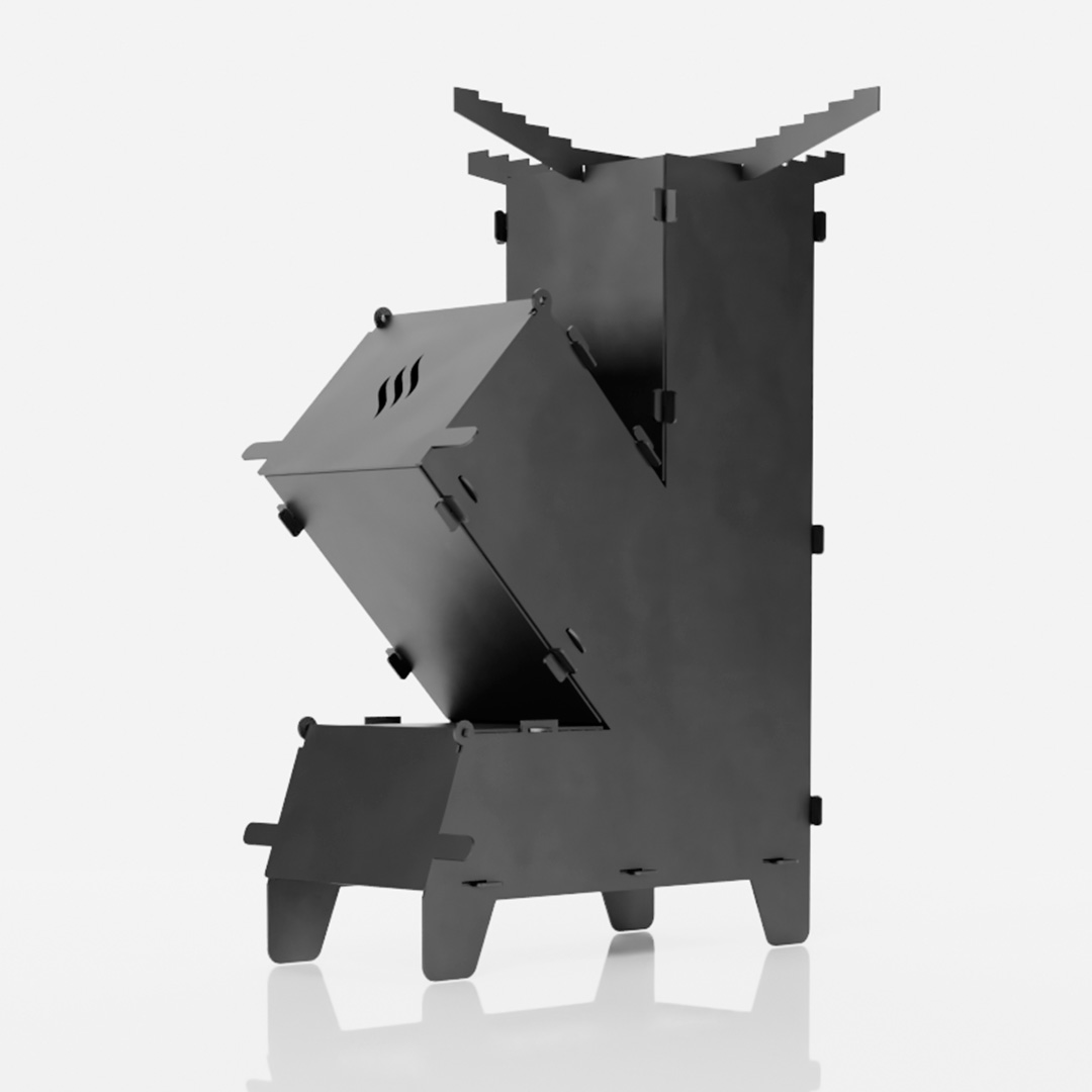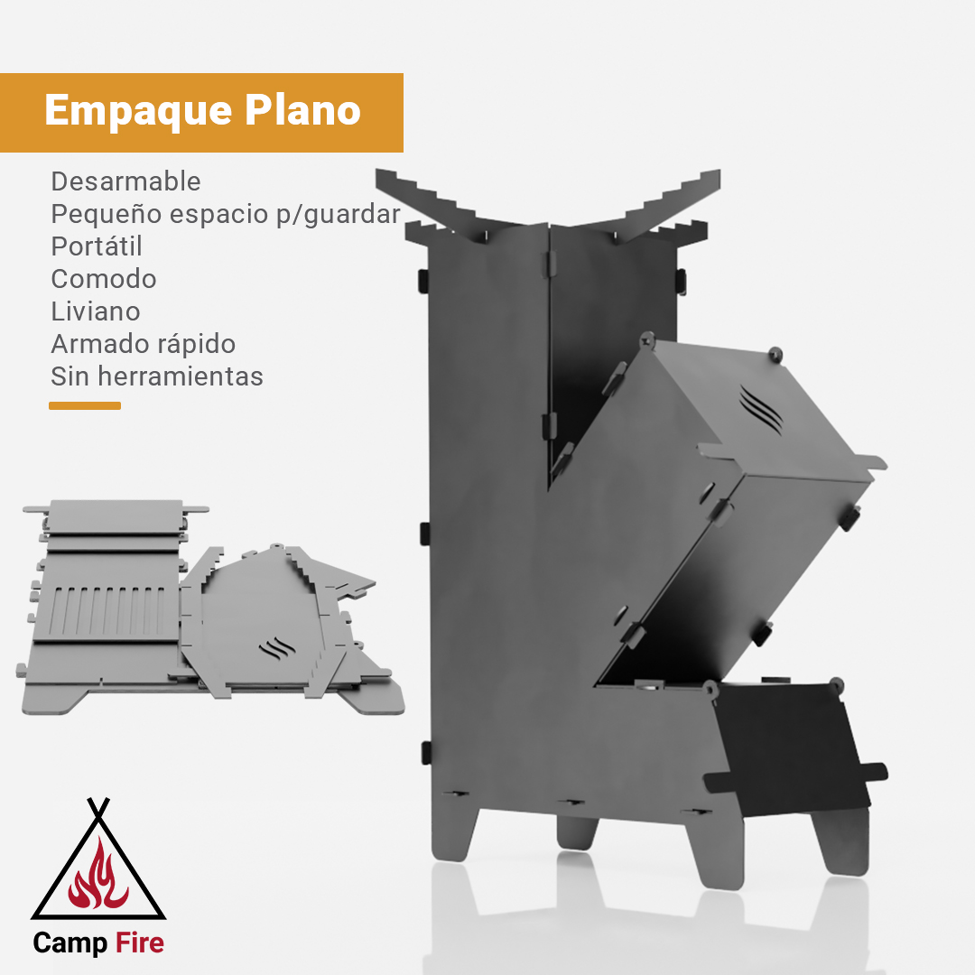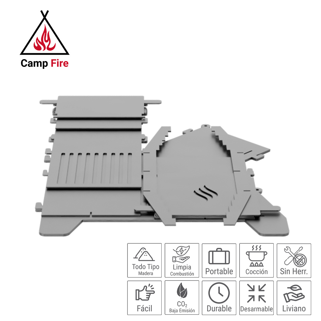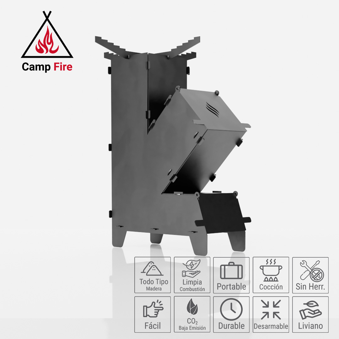 Durable y de bajo consumo. Utiliza biomasa sólida y seca como ramitas, piñas, hierba seca, ramas, corteza de árbol, carbón vegetal, pellets. Pesa 7 kg y es portátil, lo cual es una excelente solución para cocinar al aire libre.