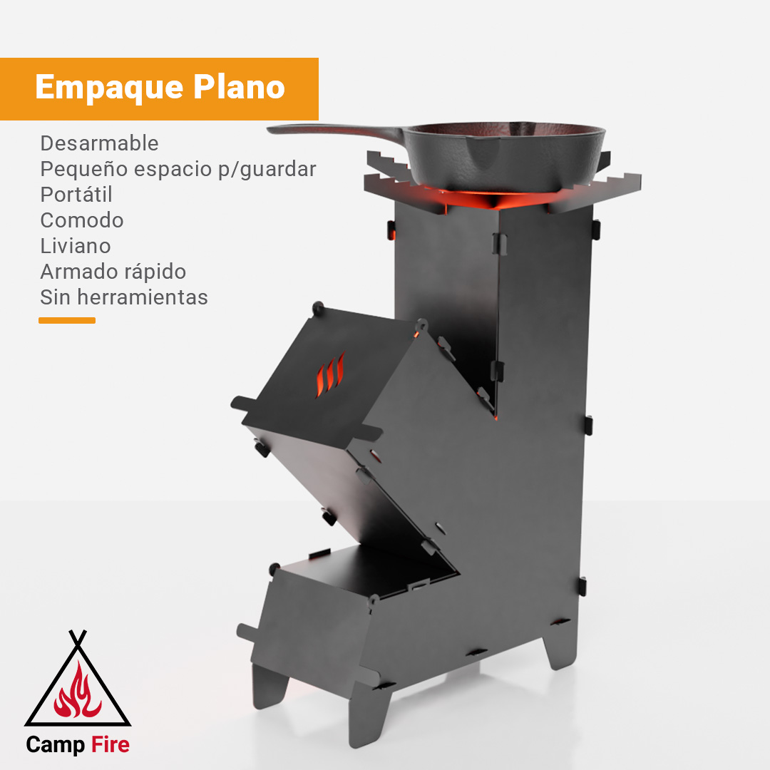 Esta estufa peso pluma se ensambla para crear un infierno de calor eficiente. Dos tomas de aire en la parte superior e inferior de la estufa mejoran la eficiencia de la combustión. Alimenta palos y ramitas y proporcionará calor para hervir agua para el café de la mañana o una comida al final del día en unos pocos minutos.