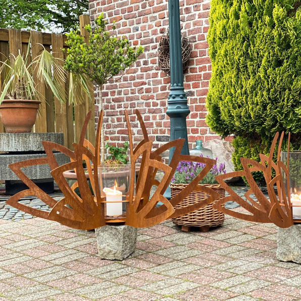 LOTUS utiliza combinación de metal con diversos elementos para crear una decoración de jardín armoniosa. Las formas artísticas que utiliza en sus diseños se funden en una estética que haced estos espacios algo especial. Su aplicación al aire libre de estructuras modernas es tendencia creciente actualmente. La imagen industrial y la decoración personalizada de cada diseño logran transformar los patios en zonas de cierto atractivo romántico.