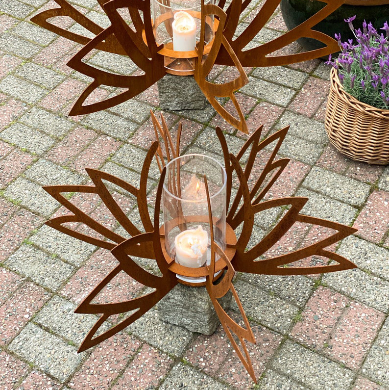 Este accesorio de jardín multifuncional agrega un poco de dramatismo a su jardín. La suntuosa flor de metal se puede utilizar como macetero, objeto escultórico, farol o antorcha. Seguro que será el centro de todas las miradas.