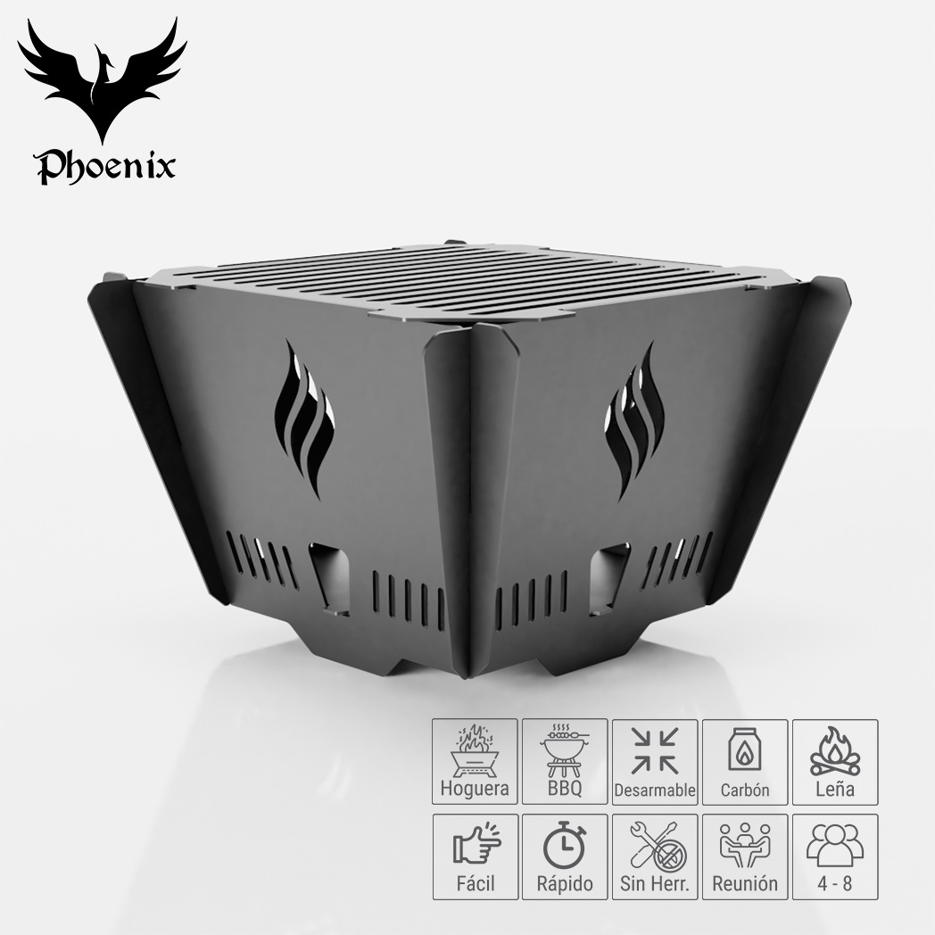 2 en 1, brasero y hoguera desarmables y embalaje plano. Ideal para exteriores, de diseño estilizado con parrilla para barbacoa adicional.
