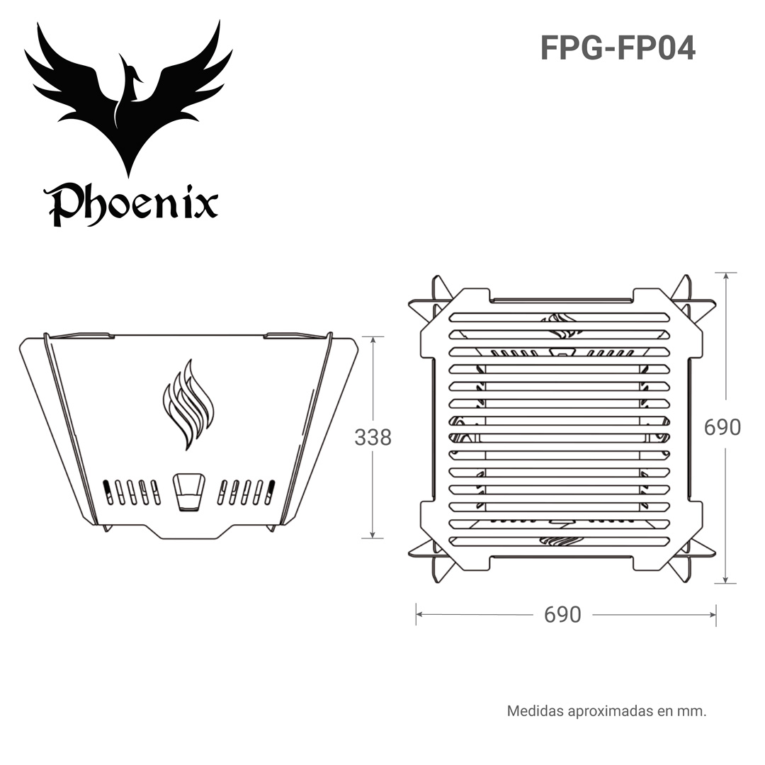 La línea Phoenix - 2 en 1 es una forma fantástica de llevar el ambiente de campamento al aire libre a su patio trasero o fondo. Son una opción de calefacción exterior simple y económica. No solo calientan su área de entretenimiento al aire libre, sino que colocando su placa de parrilla, puede convertir su fuego en un grill para cocinar.