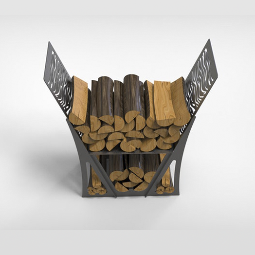 Estantería metálica para leña, para interior o exterior, construida en acero al carbono con recubrimiento negro. Desarmable y de empaque plano. Estilo moderno, minimalista y decorativo.