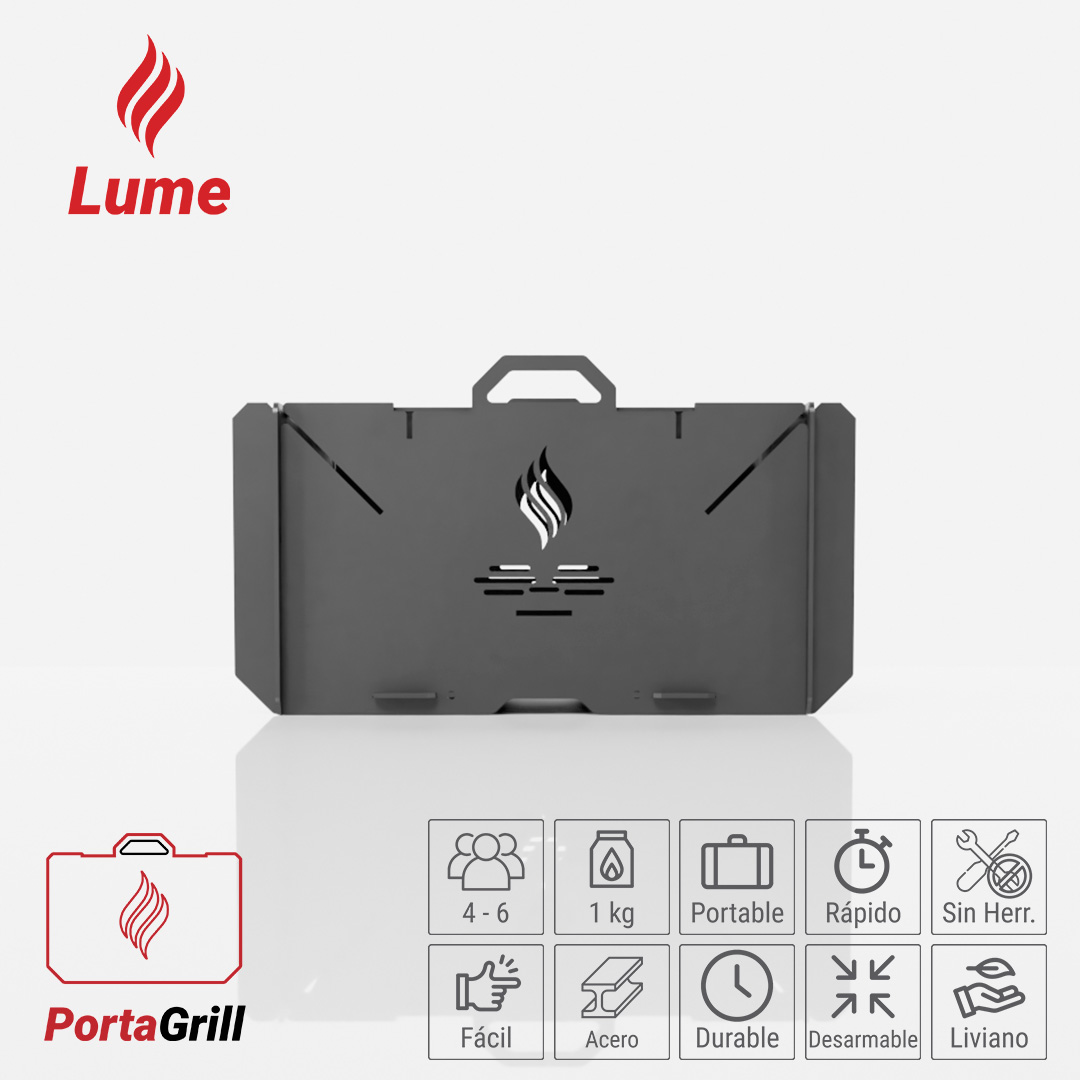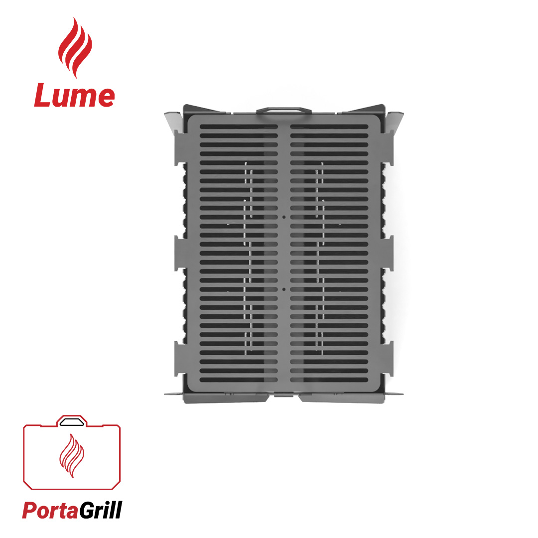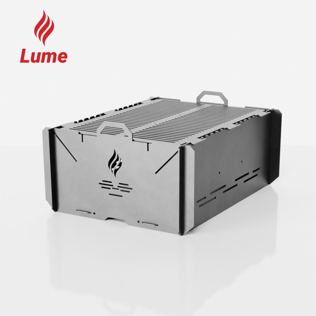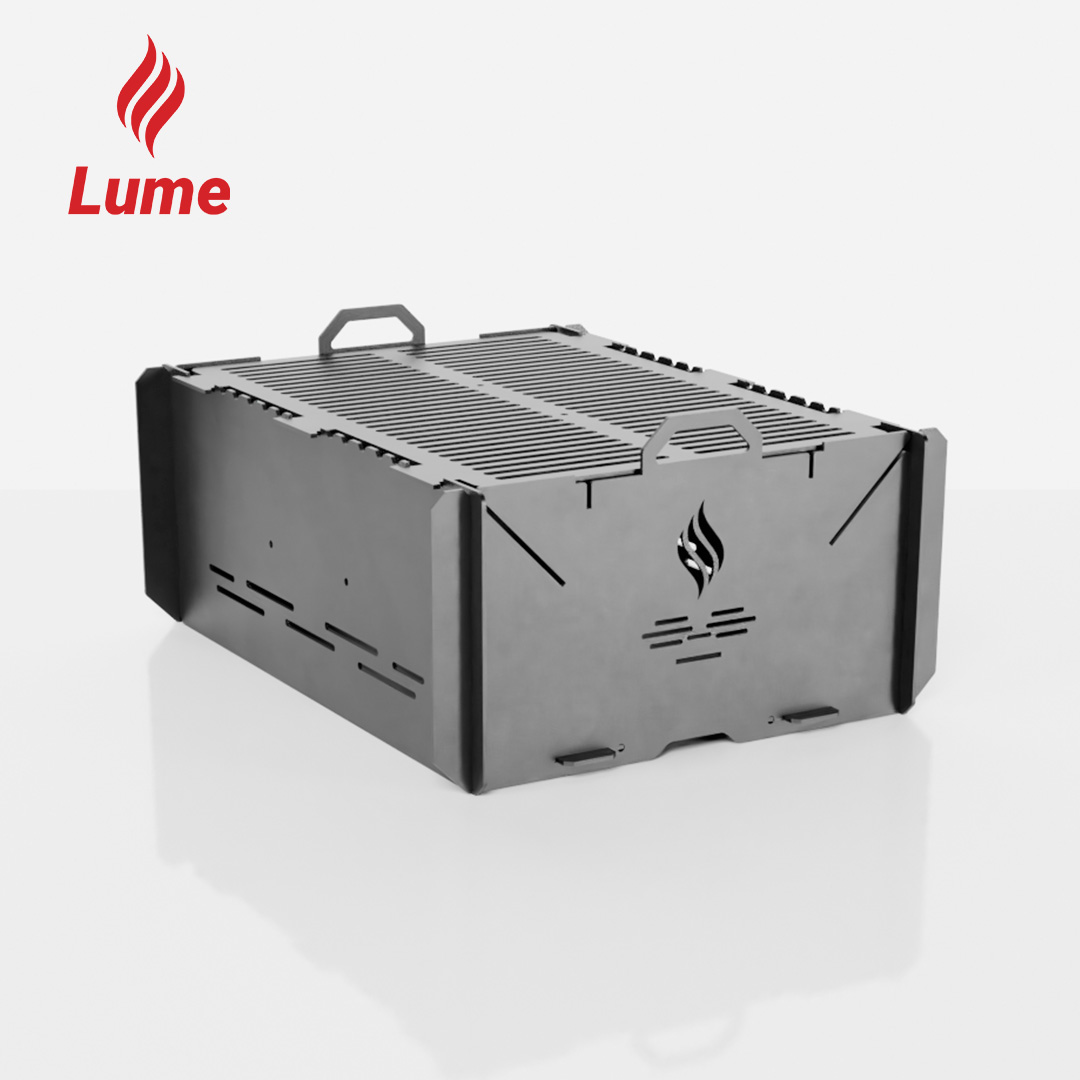 El diseño LUME es la versión transportable de la línea PORTAGRILL de braseros desarmables y embalaje plano. Ideal para exteriores, el patio trasero o el jardín con un diseño estilizado con parrilla para barbacoa adicional.