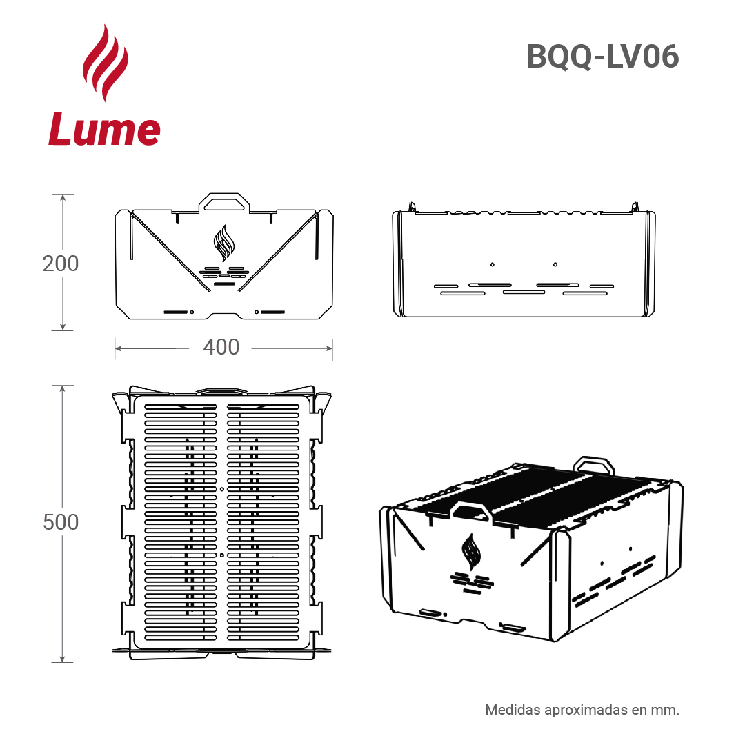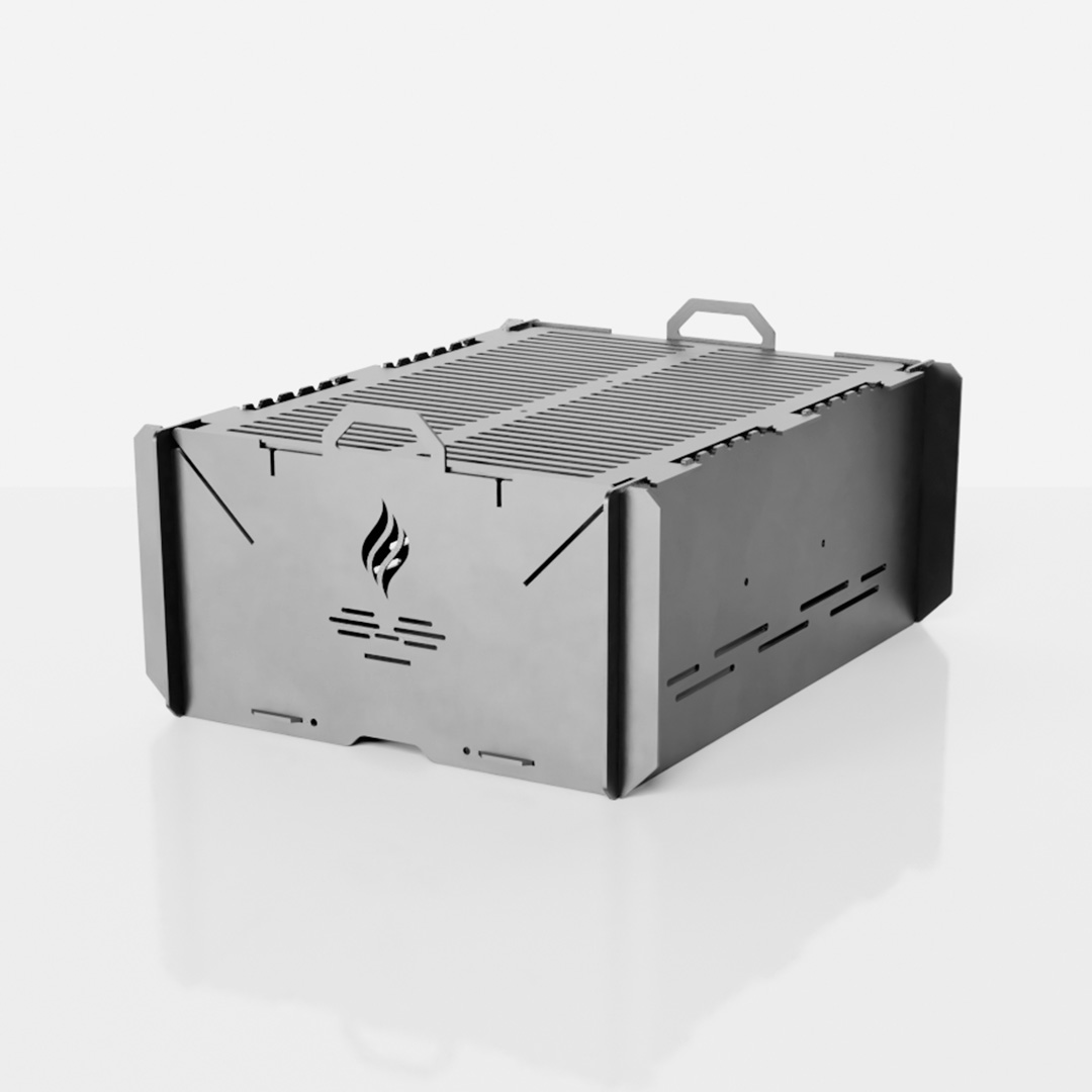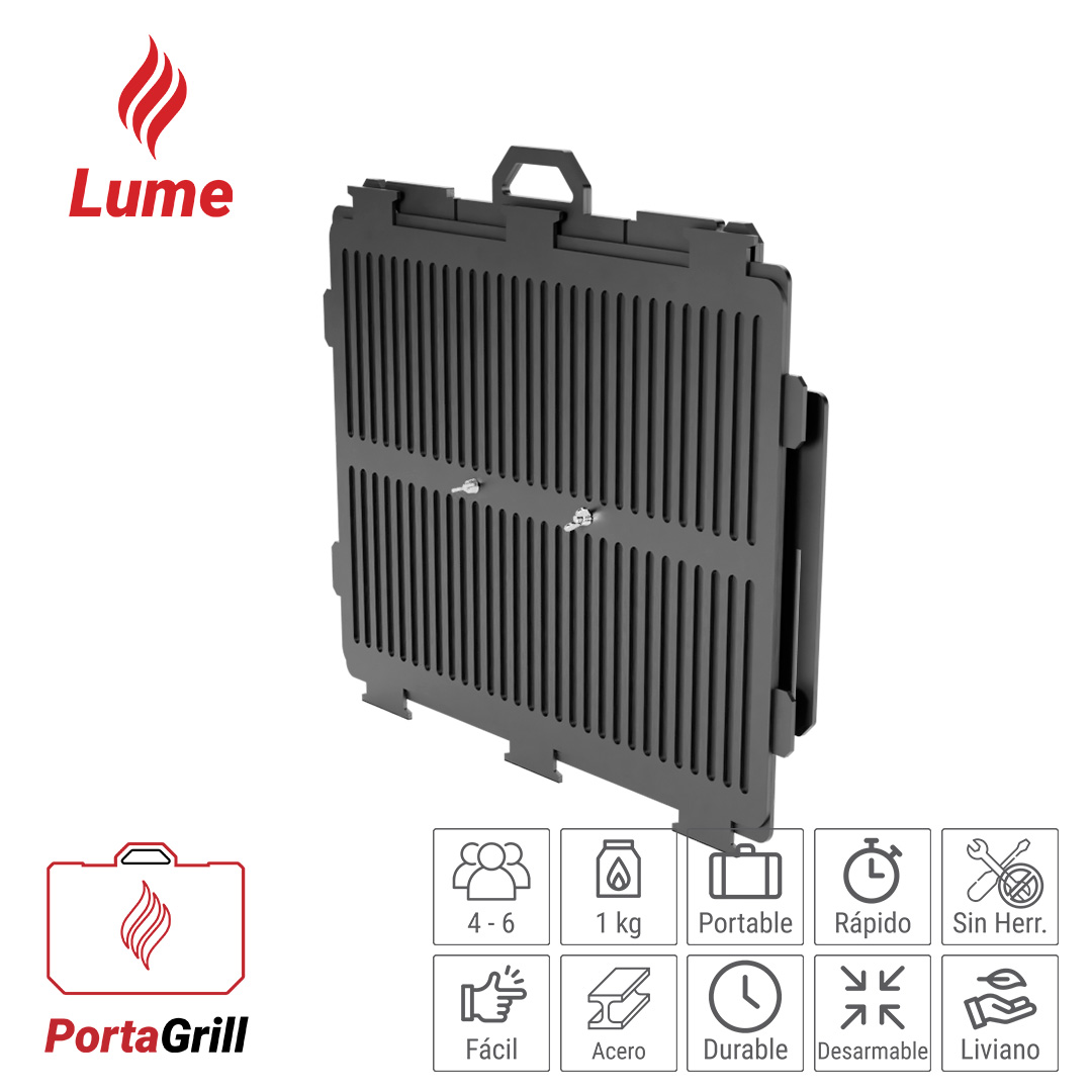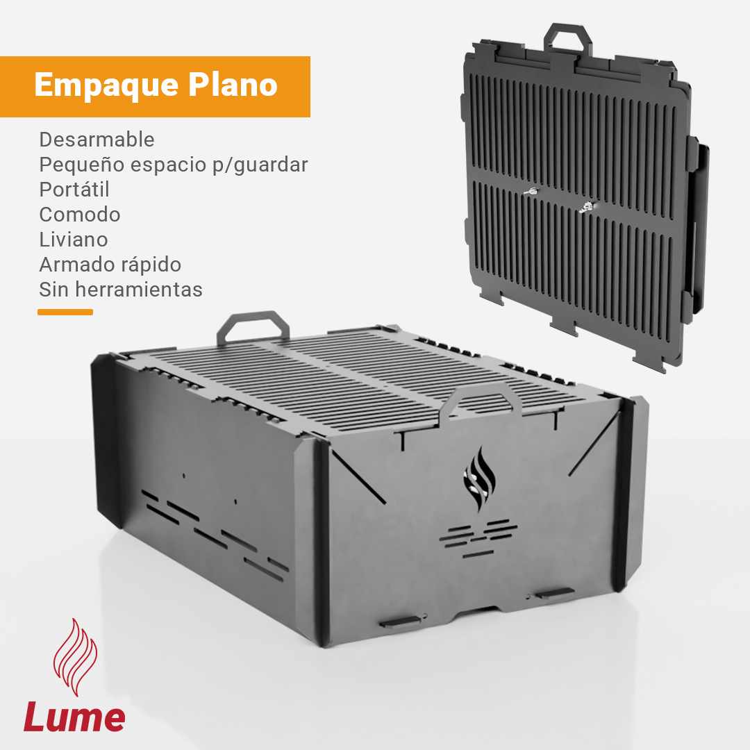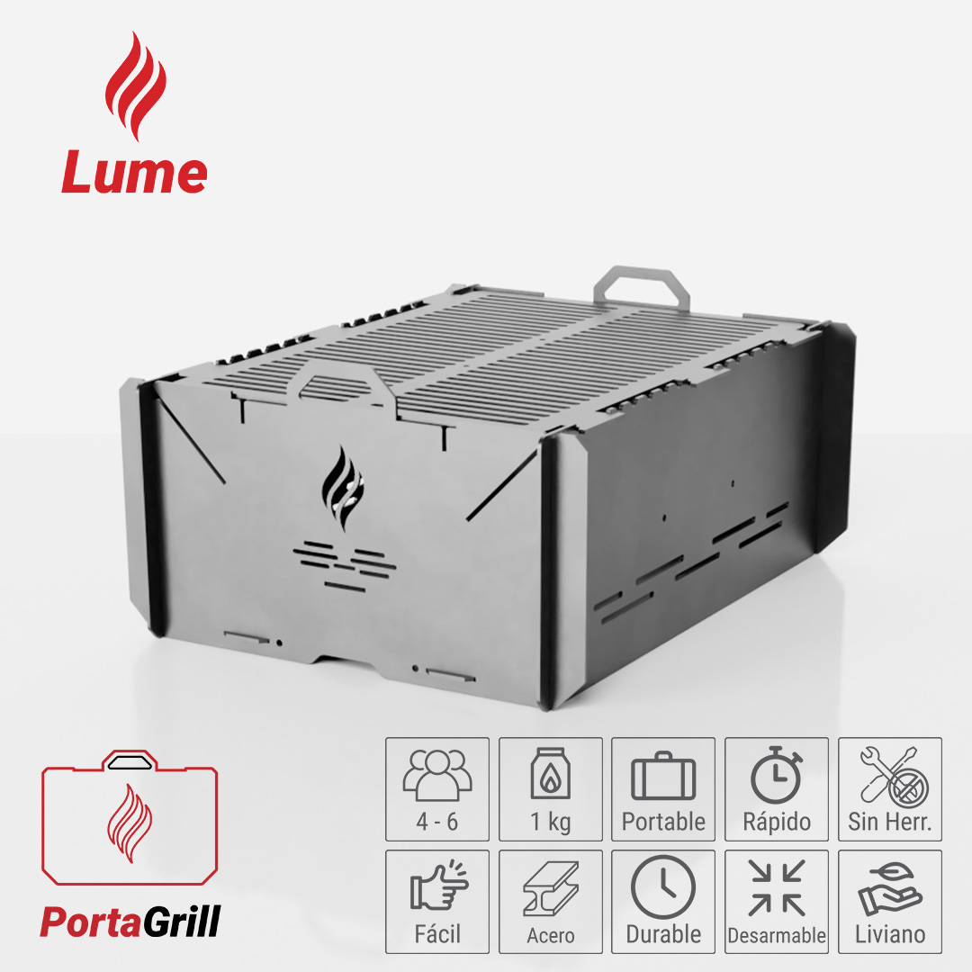 El diseño LUME es la versión transportable de la línea PORTAGRILL de braseros desarmables y embalaje plano. Ideal para exteriores, el patio trasero o el jardín con un diseño estilizado con parrilla para barbacoa adicional.