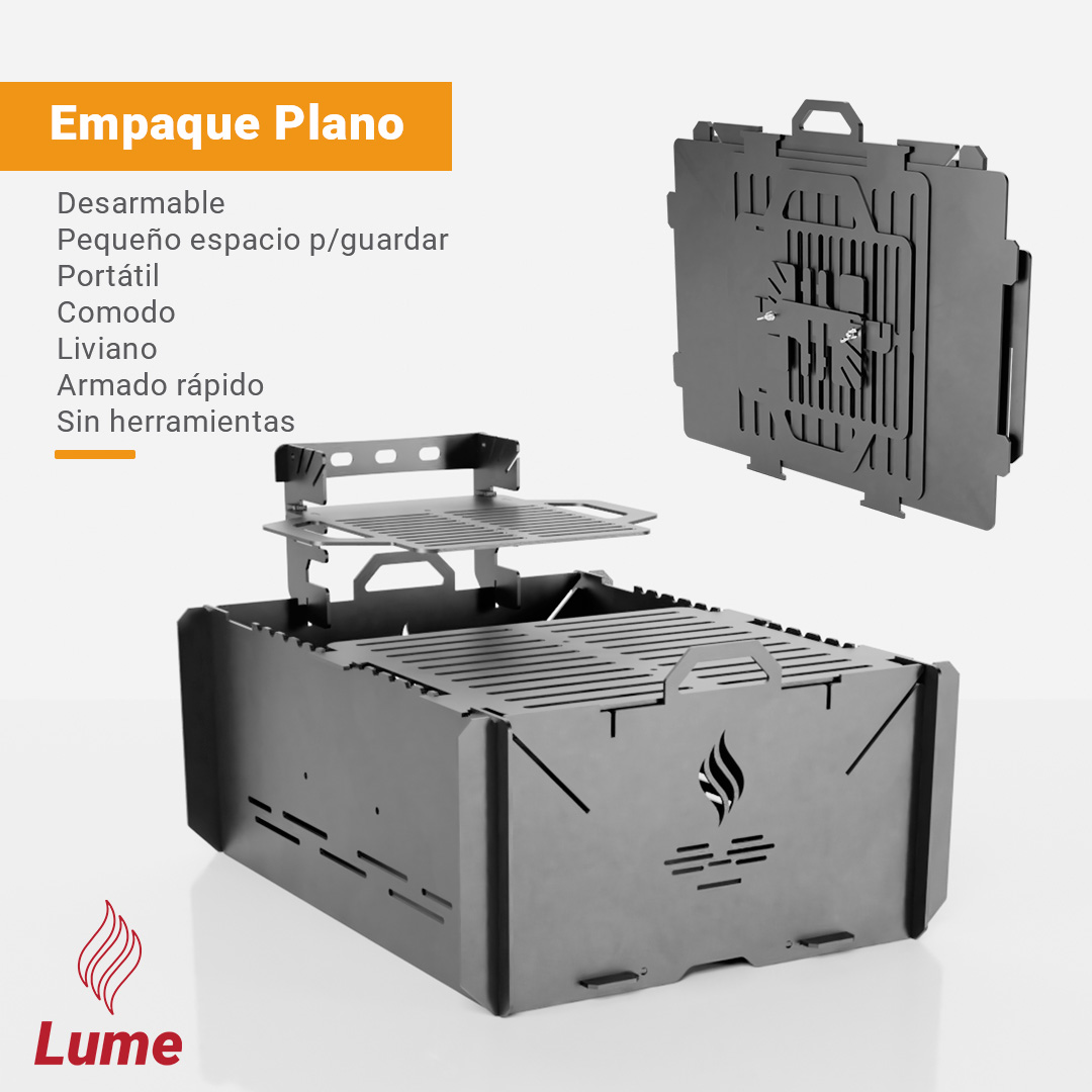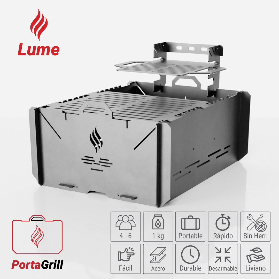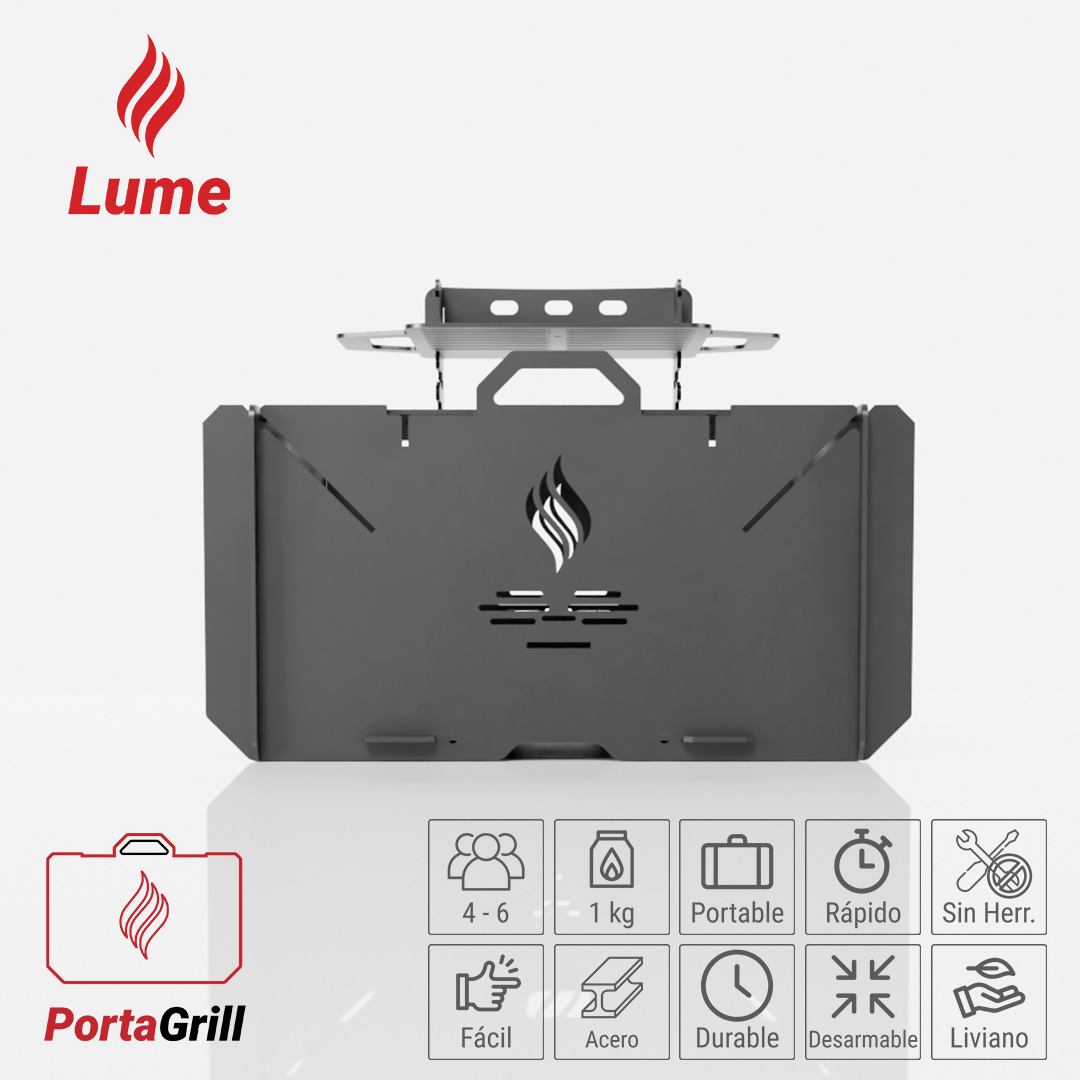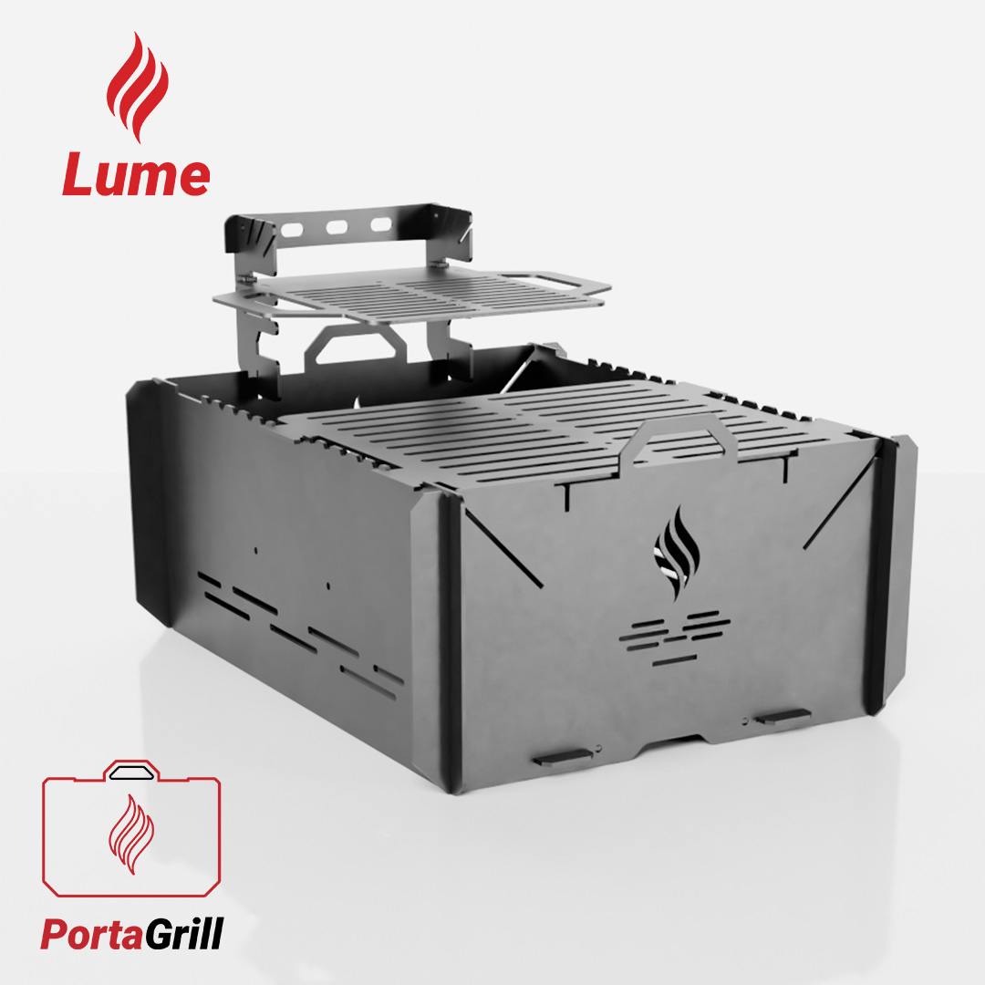 El diseño LUME es la versión transportable de la línea PORTAGRILL de braseros desarmables y embalaje plano. Ideal para exteriores, el patio trasero o el jardín con un diseño estilizado con parrilla para barbacoa adicional.