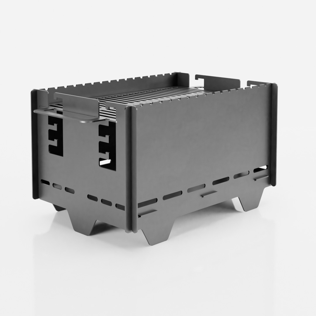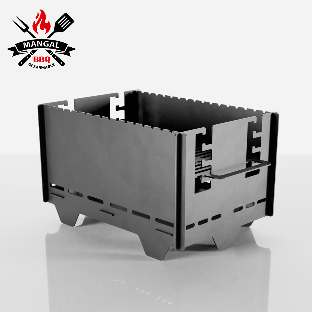 El diseño MANGAL es la versión más grande de la línea PORTAGRILL de braseros desarmables y embalaje plano. Ideal para exteriores, el patio trasero o el jardín con un diseño estilizado con parrilla para barbacoa adicional.