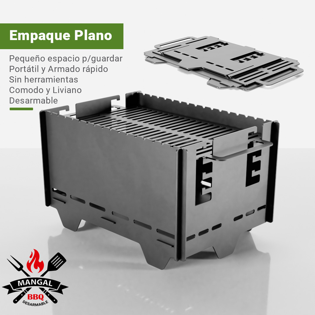 Brillante herramienta de barbacoa para acampar y/o fiestas. El diseño de parrilla de carbón, mantiene tu carne con el sabor a la parrilla y carnes ahumadas. Regalo perfecto para barbacoas, picnics, patio trasero, camping o una noche en el patio, fiestas en interiores, exteriores, viajes, parque, playa, bosque con tus amigos y familiares.